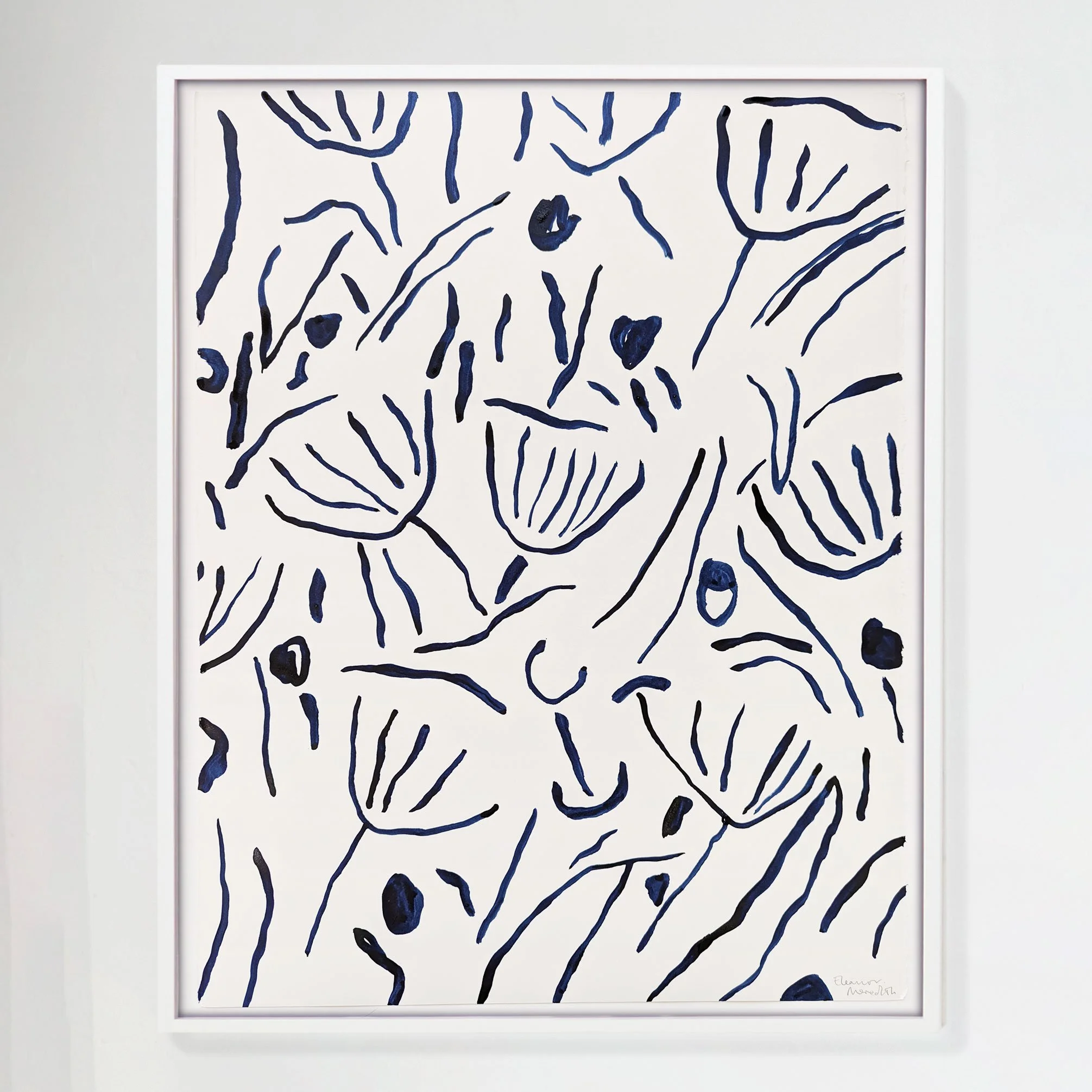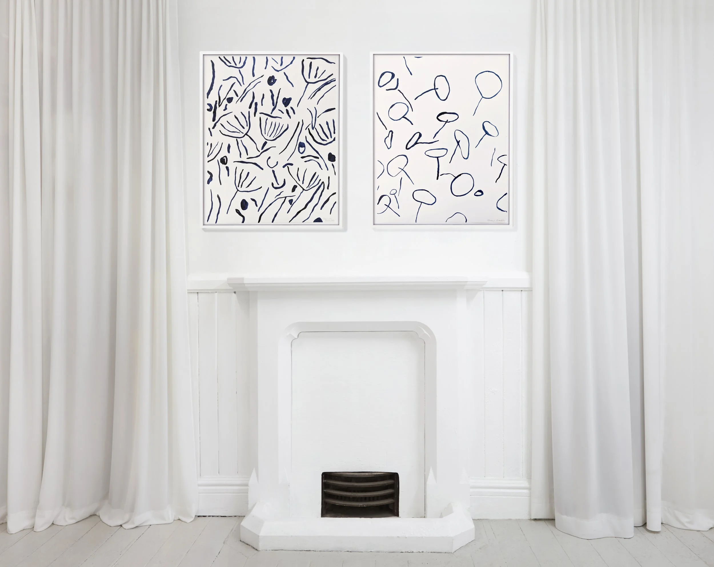 The paintings are made using watercolour or my favourite medium — water-soluble ink in Prussian blue